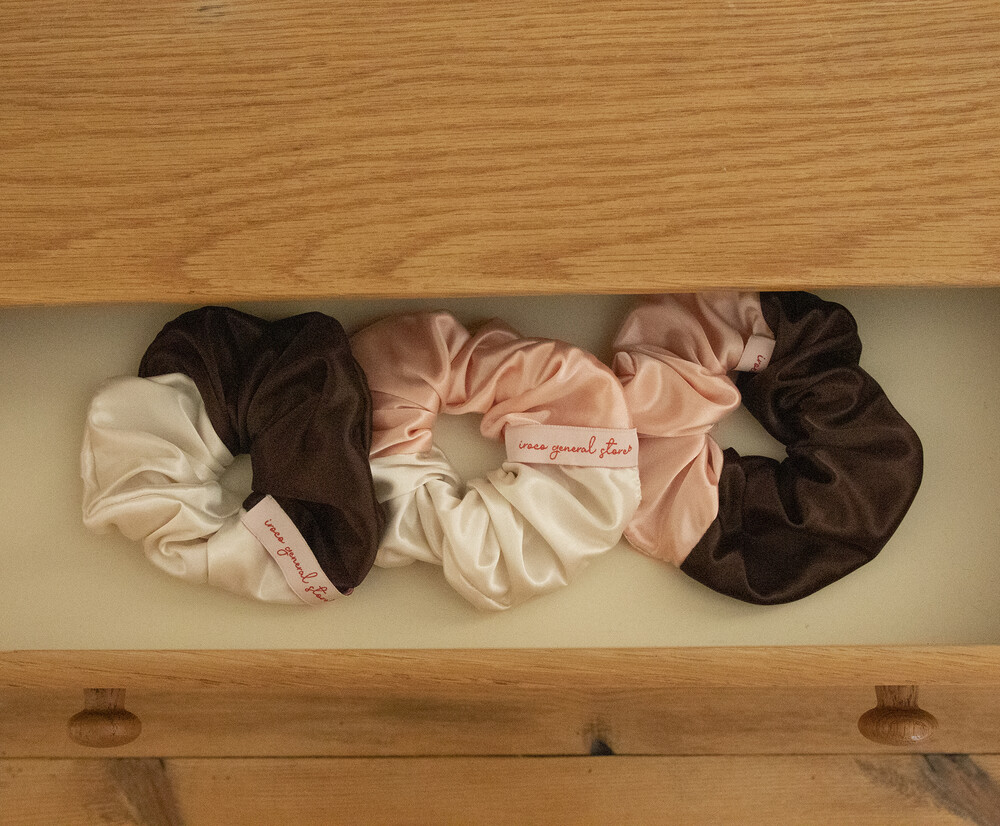 은은한 광이 고급스러우며 흔하지 않은 스크런치 입니다.