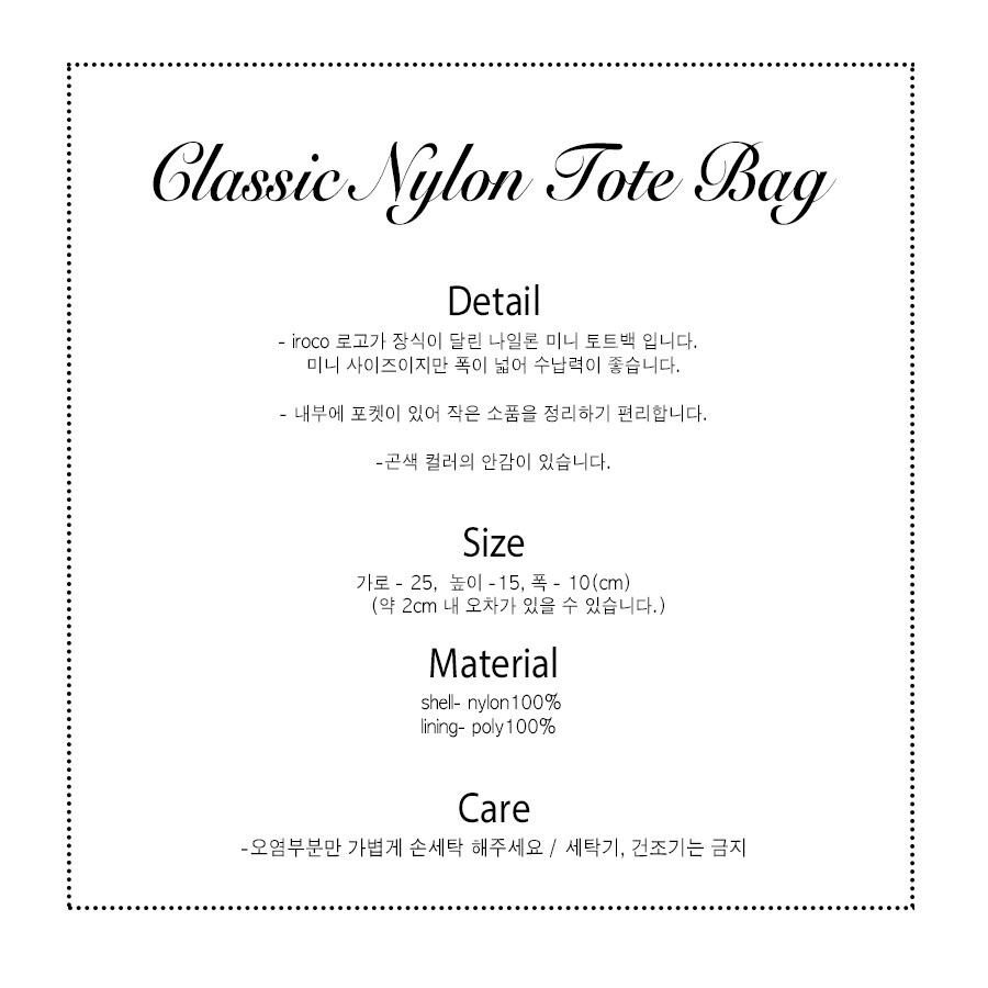 Size: 가로 - 25cm, 높이 - 15cm, 폭 - 10cm (약 2cm 내 오차가 있을 수 있습니다.) Material: shell- nylon 100% lining- poly100% Made in China Care: 오염부분만 손세탁 / 세탁기, 건조기 x