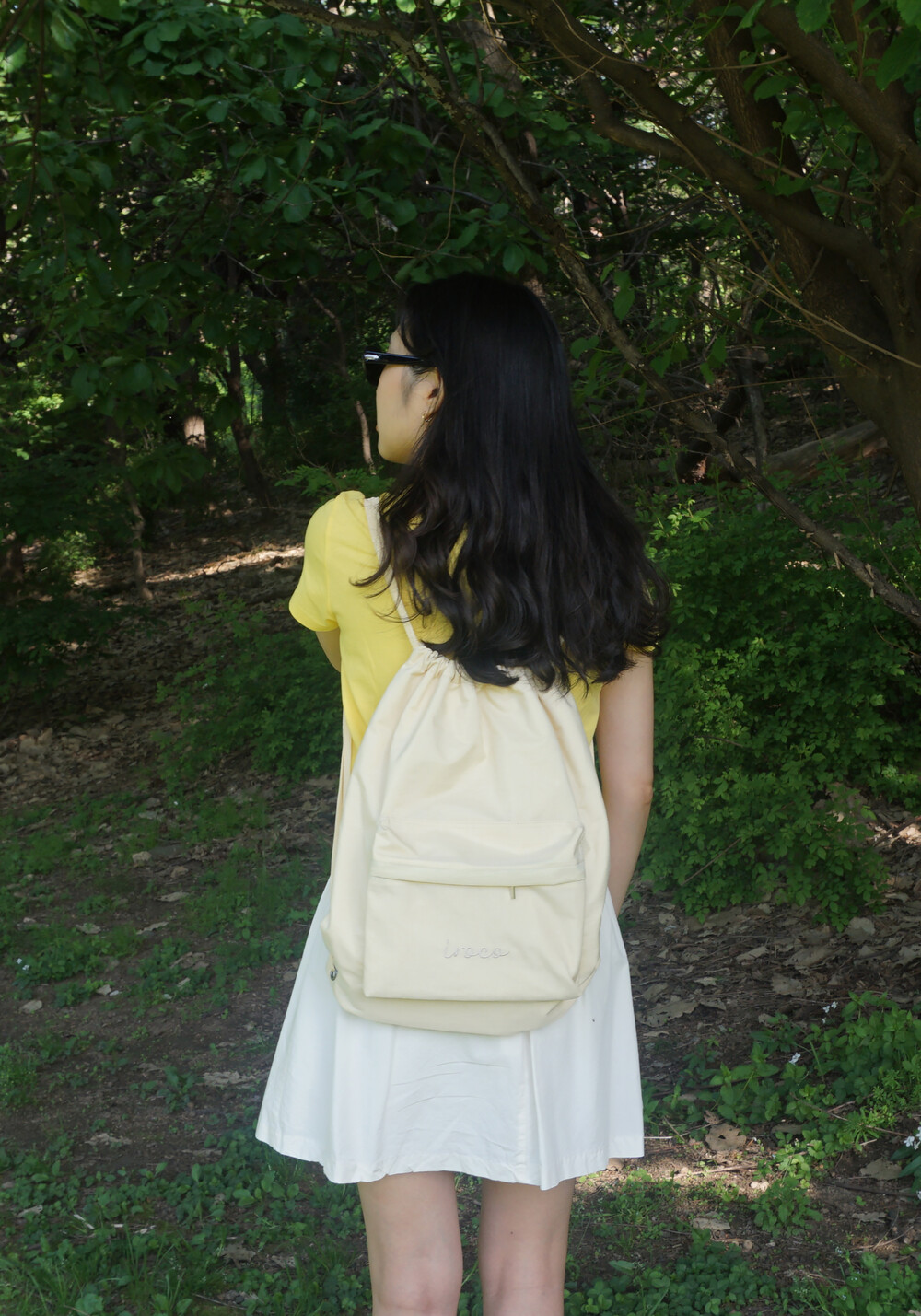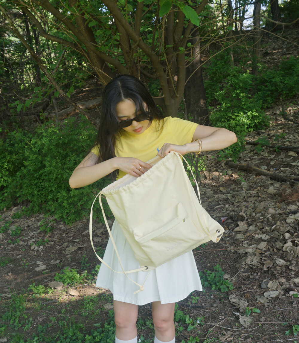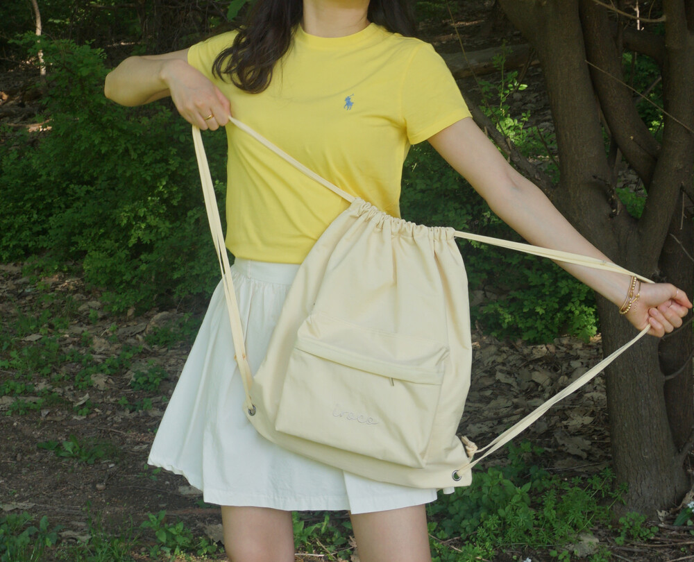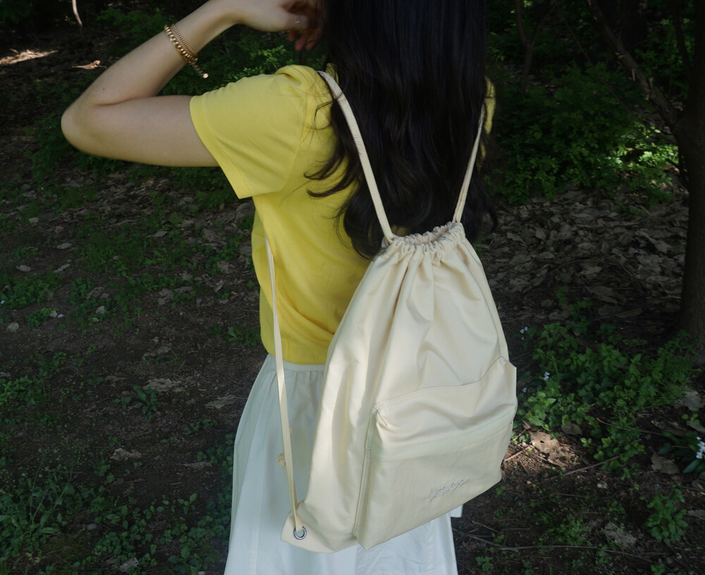 아웃 포켓에 iroco 로고가 수 놓인 나일론 스트링 백팩 입니다. 포켓에는 지퍼가 달려있으며 소지품 보관에 용이합니다. 내부에는 에어팟과 카드 등을 수납 할 수 있는 포켓이 있습니다.