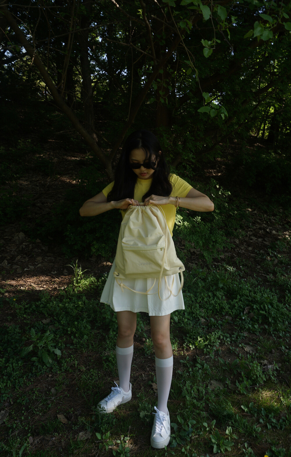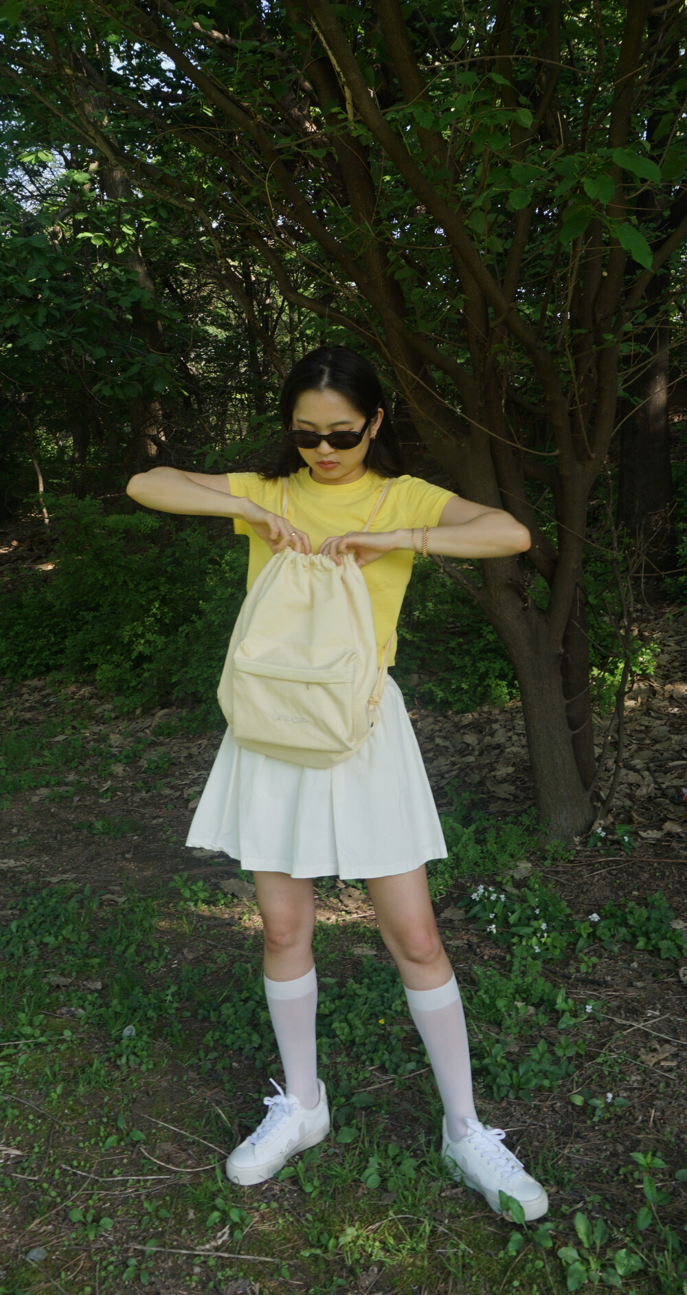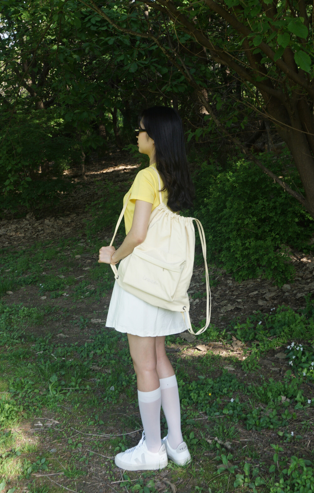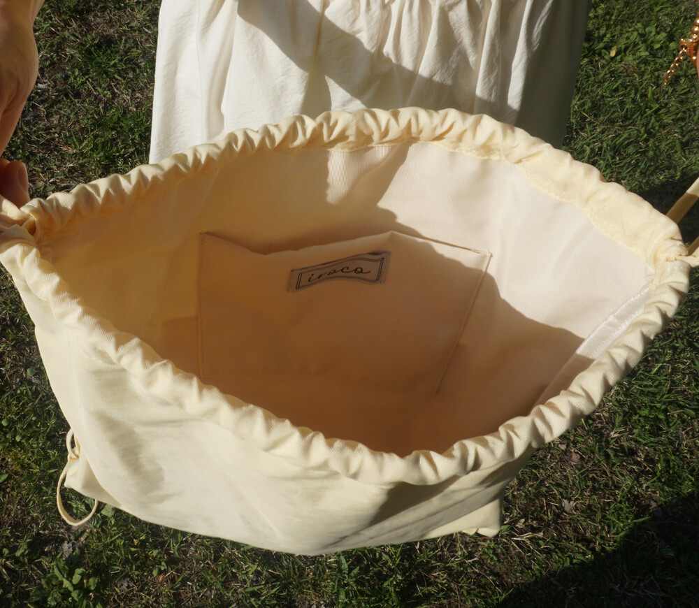 아웃 포켓에 iroco 로고가 수 놓인 나일론 스트링 백팩 입니다. 포켓에는 지퍼가 달려있으며 소지품 보관에 용이합니다. 내부에는 에어팟과 카드 등을 수납 할 수 있는 포켓이 있습니다.