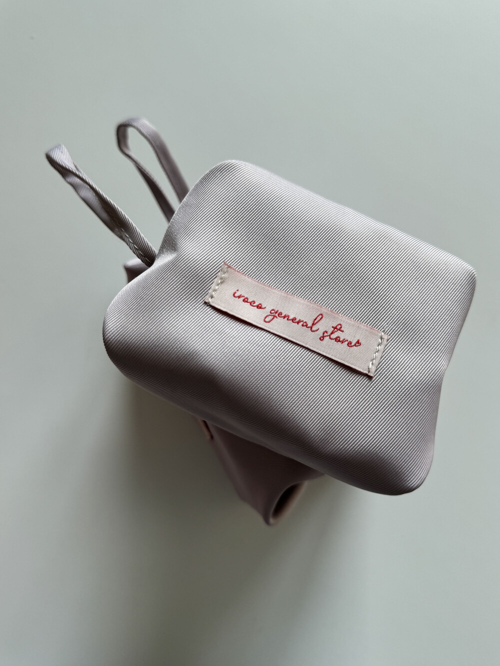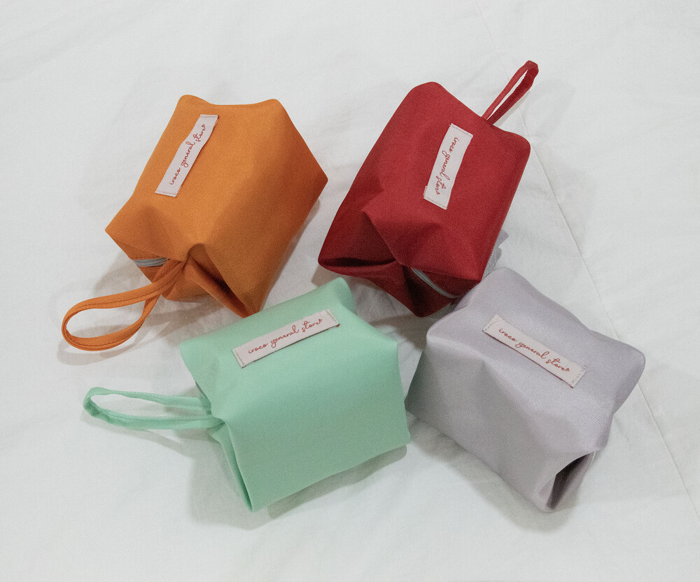- 광택이 있는 나일론 트윌 원단을 사용한 사각형 모양의 파우치입니다.
