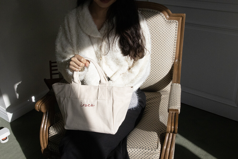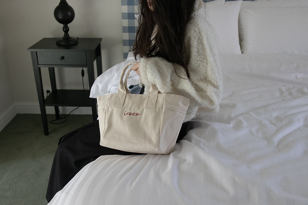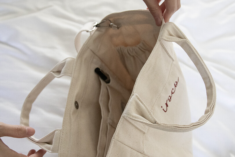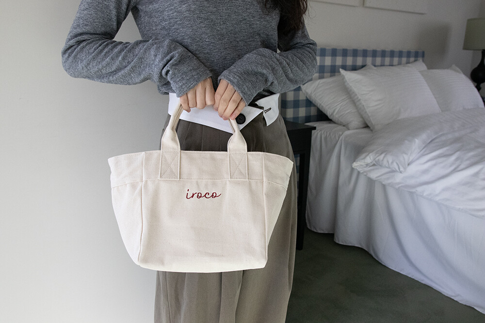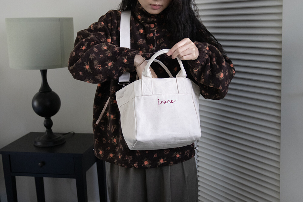 iroco의 로고가 수 놓인 수납력 좋은 미니백입니다. 크로스 끈 탈부착이 가능하여 토트백과 크로스백 둘다 가능한 활용도 높은 가방입니다. 탈부착이 가능한 크로스 끈은 길이 조정이 가능하여 기호에 따라 조절하여 사용하시면 됩니다. 제원단 두겹으로 만들어져 내구성이 좋으며 가운데 상단에 자석이 있어 모양을 잡아주며 여닫기 편합니다. 따로 텀블러와 펜 주머니를 포함한 총 5개의 주머니가 있어 소지품을 구분하여 수납 할 수 있습니다. 미니백이지만 가로 폭이 넓어 책과 11" 아이패드 또한 충분히 넣을 수 있는 크기입니다.